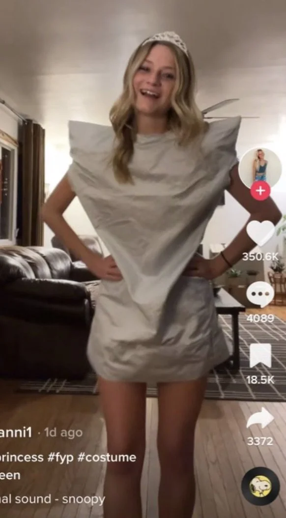 All you need for this look is a pillow case you’re willing to cut up and a tiara. Depending on the pillow case size you can either wear it as a dress or throw a white skirt or shorts under.